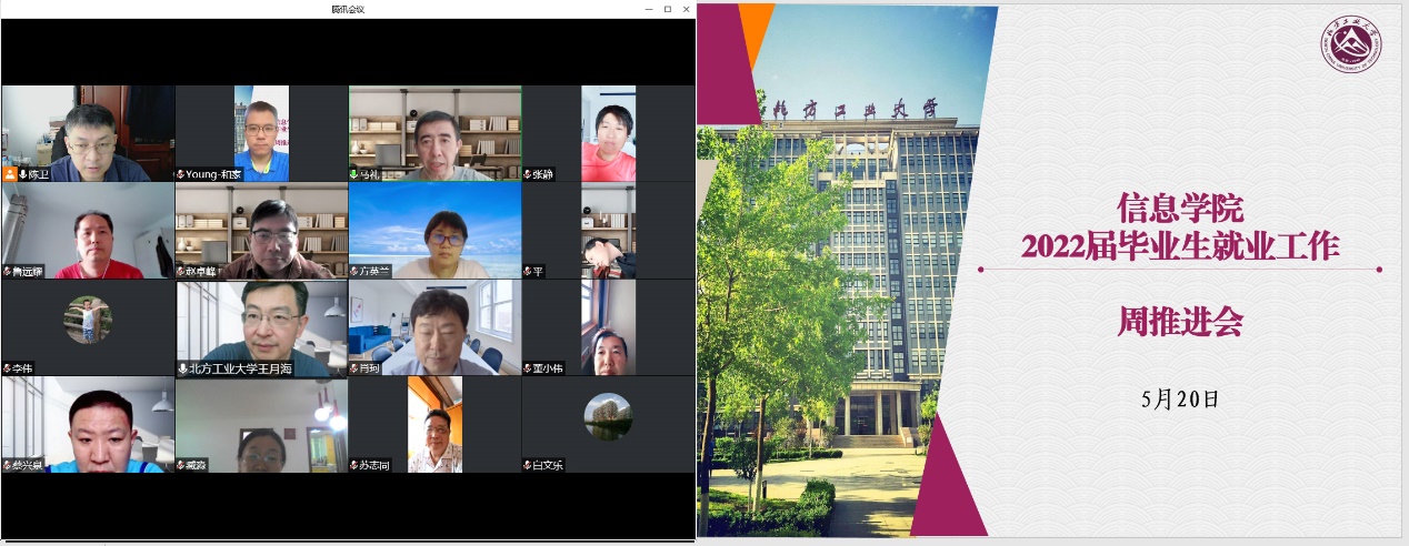 为认真贯彻落实学校2022届毕业生就业工作推进会会议精神,持续推进就业工作,信息学院开展“‘就’不停歇,周周推进”计划,建立2022届毕业生就业工作周推进会机制,每周五学院院长、书记召集系主任、毕业班辅导员、班导师(导师)召开推进会持续研讨推进就业工作,将学校就业工作“50日冲刺”活动落小落实落细。5月20日下午,信息学院通过腾讯会议在线召开2022届毕业生就业工作推进会,学院院长马礼、党委书记王月海、各系主任...
