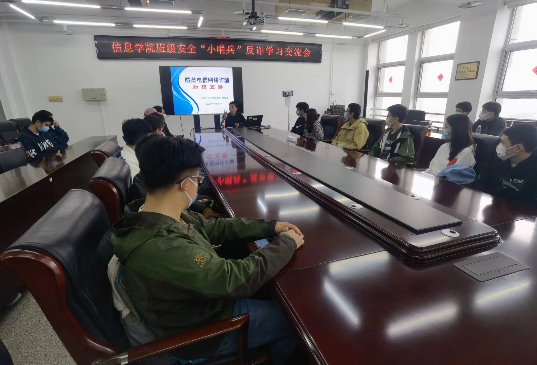为提高学生“反诈”意识和能力,从源头上预防各类电信诈骗,信息学院近期以“防范电信诈骗,打造平安班级”为主题,举办防范电信诈骗宣传教育活动。安稳处刘有宝老师,学院副书记陈卫,辅导员李伟以及学院所有班级安全“小哨兵”参加了本次活动,学院全体本科和研究生通过直播平台在线观看。刘有宝老师以《防范电信网络诈骗知识宣讲》为主题,从电信网络诈骗的特点入手,结合近年来真实案例,为同学们详细讲解不法分子层出不穷...