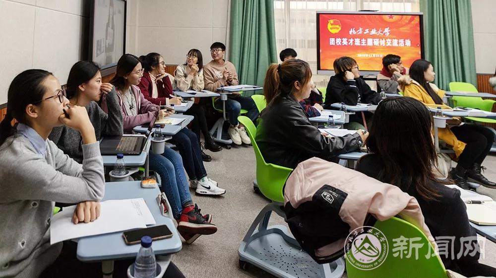 本次研讨交流会的主题是“新时代团学干部的责任与担当”。英才班的同学们首先观看了视频短片《担当——记优秀学生干部》,该短片通过一个个生动鲜活的事例讲述了必赢官网学生干部服务师生、积极工作、为校争光、无私奉献的青春形象,展现了学生干部敢于担当、勇于作为的优良作风。随后,大家围绕这个主题展开讨论。土木工程学院张昊然同学说,身为学生干部应做到团结同学,让团学组织心往一处想、劲往一处使、拧成一股绳,团学工作才会越来越好。经济管理学院王宁同学举例说明学生干部应为同学做实事,从同学中来到同学中去,服务好同学才是一名合格学生干部应有的品质。文法学院唐琳娜同学表示,作为一名团学宣传工作的负责人,她的责任与担当就是让团学活动新闻更能体现北方工大的风貌,展现北方工大人的精神内涵,与此同时还应对同学们起到思想引领作用。校学生会主席刘远东同学结合自身团学工作经历表示,作为新时代的团学干部应讲政治、讲付出、讲热心,提高奉献意识,不忘初心,学会享受工作,用以身作则、身先士卒的工作常态把团学工作做到更好。与会的其他同学也都分享了各自的心得与体会。