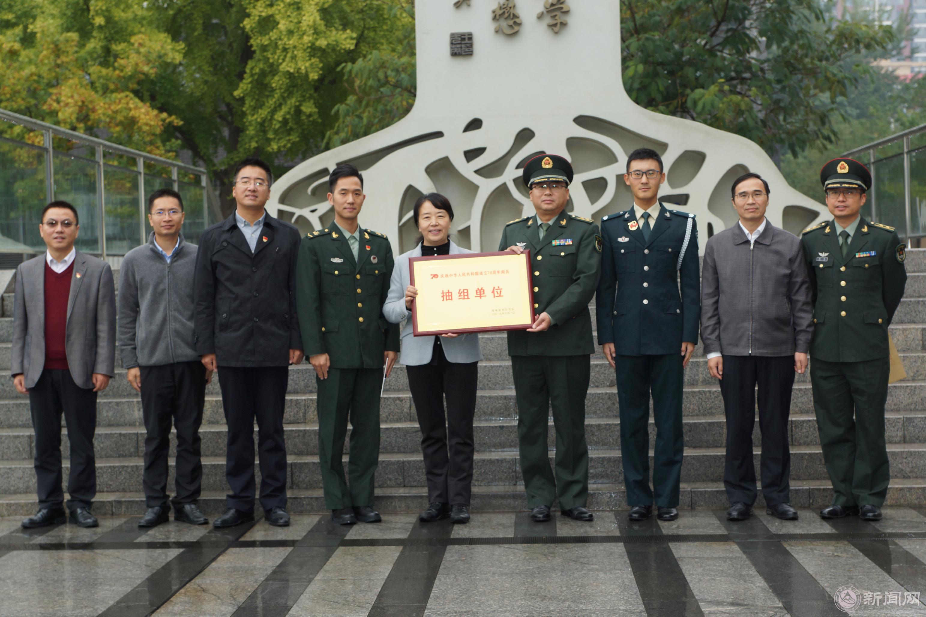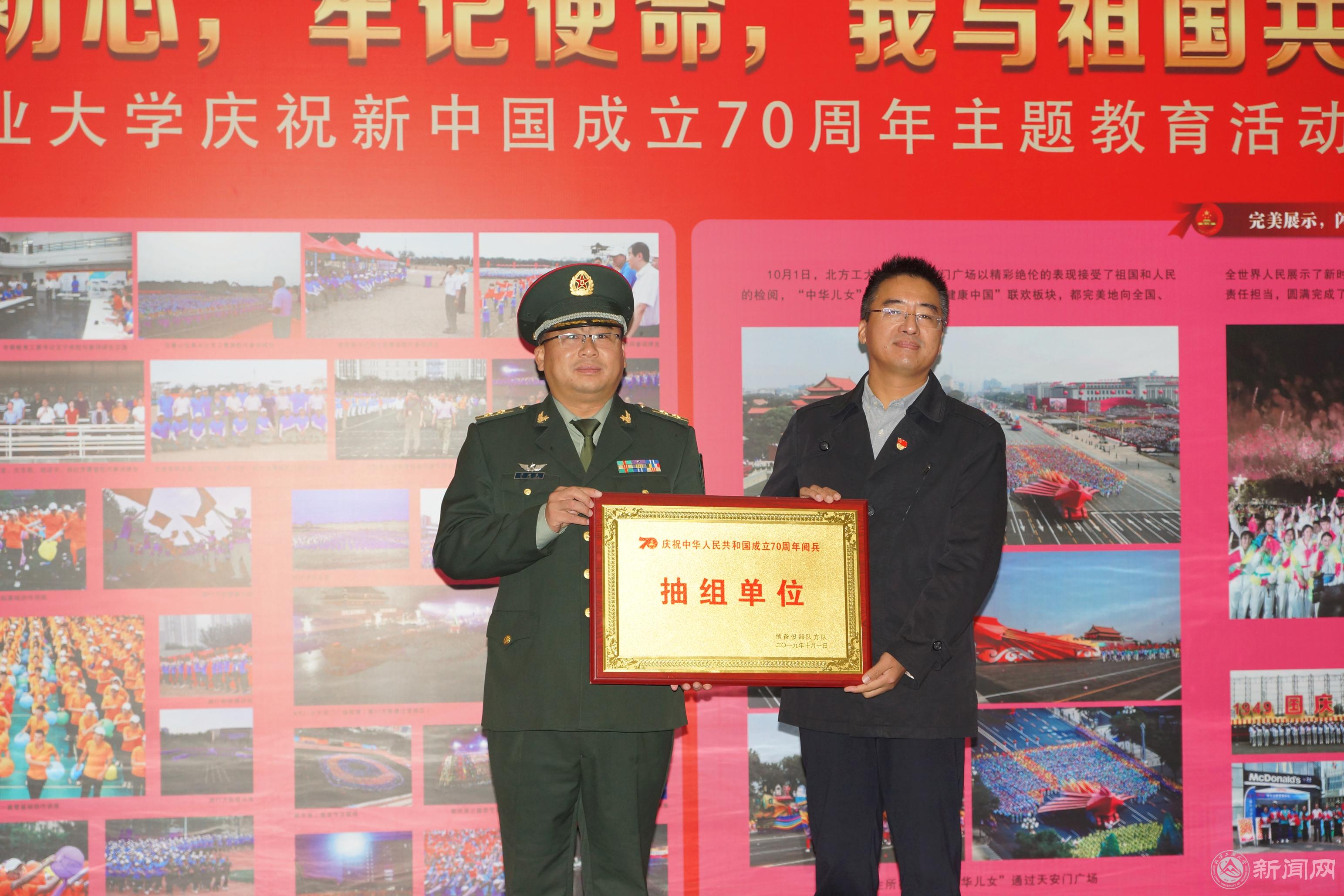 会上,齐建农参谋长首先介绍了所在部队训练、受阅情况,特别是训练过程中参训队员坚定信念、不怕吃苦、甘于奉献的感人事迹,并代表所在受阅部队向受阅同志出色完成国庆70周年阅兵任务表示崇高敬意,并向学校表示感谢。齐参谋长代表受阅部队向学校赠送了“庆祝中华人民共和国成立70周年阅兵预备役部队方队抽组单位”牌匾和汪泽凡同学参加阅兵的政治鉴定。