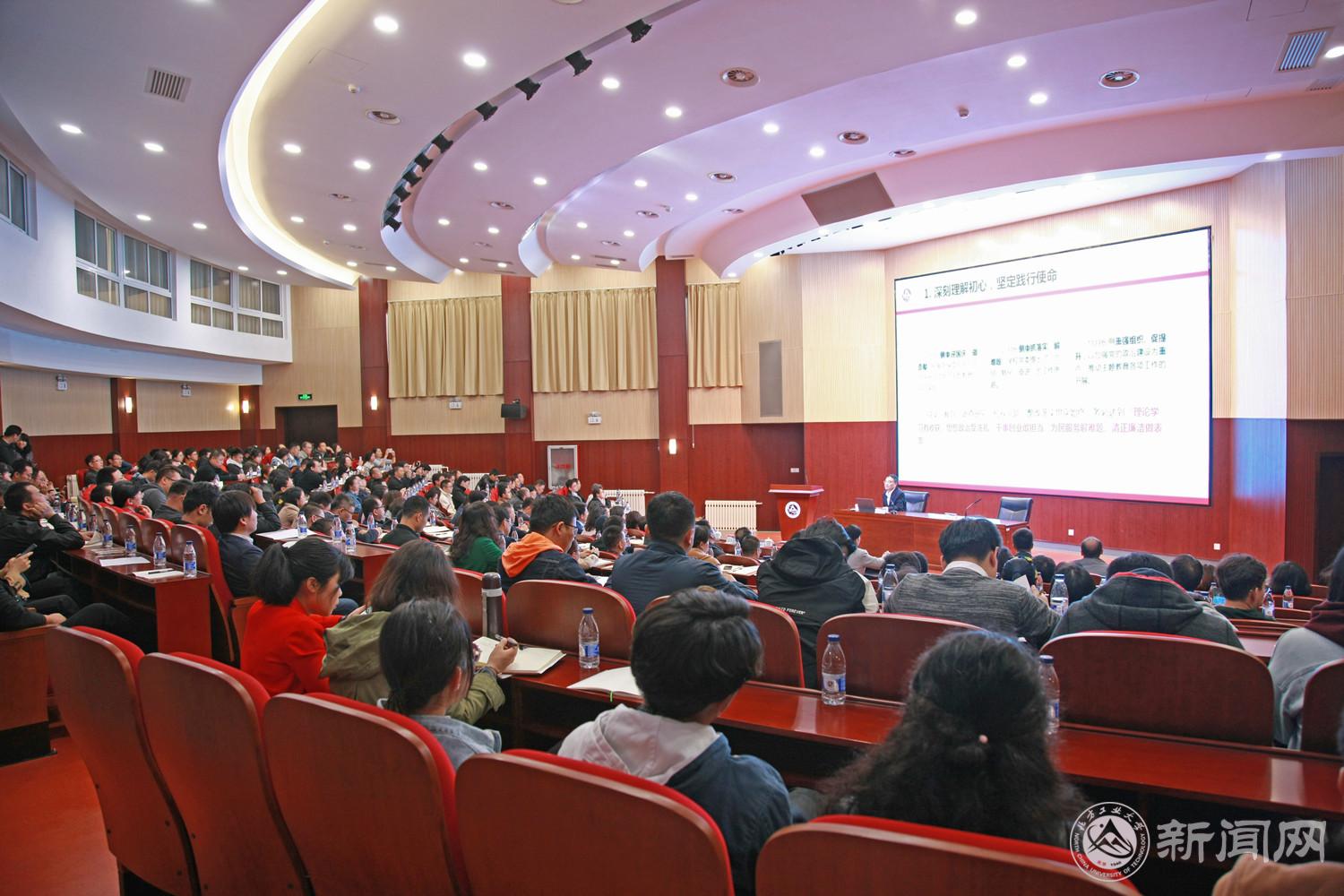 学校党委扎实开展“不忘初心、牢记使命”主题教育,按照工作要求,10月17日下午,党委书记郑文堂率先以《不忘初心 牢记使命 努力建设高水平工业大学》为主题讲授专题党课。市委主题教育第十巡回指导组组长王学勤、副组长刘开阳,成员徐越、李旭东到会指导。全体校领导、中层干部、各级党组织书记、组织员、党务秘书、党员代表共220余人参加学习。党课由党委副书记田红芳主持。
