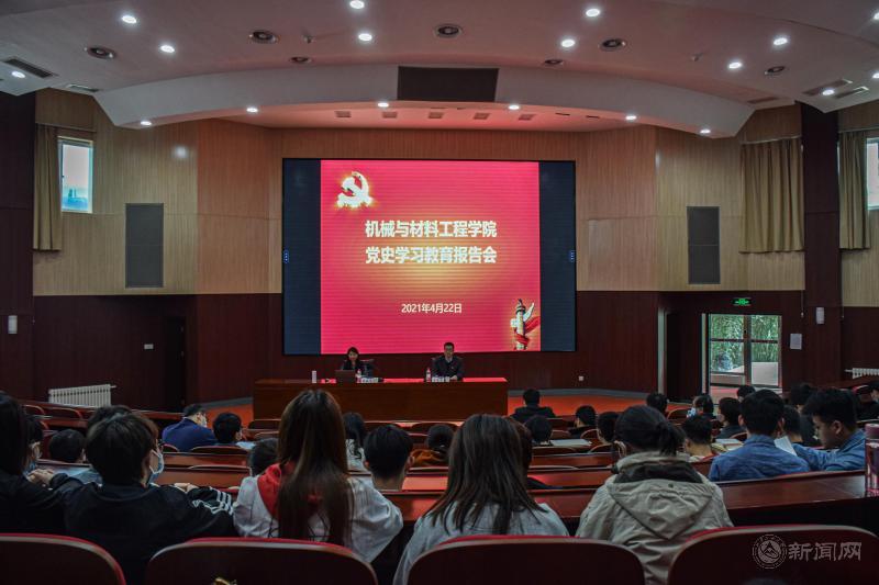 4月22日下午,机械与材料工程学院党史学习教育报告会在文化会堂举行。报告会由机材学院党委书记王文革主持,马克思主义学院教师张晓晨主讲,机材学院班子成员、系/中心主任、党支部书记、全体师生党员和部分学生代表200余人参加了本次报告会。