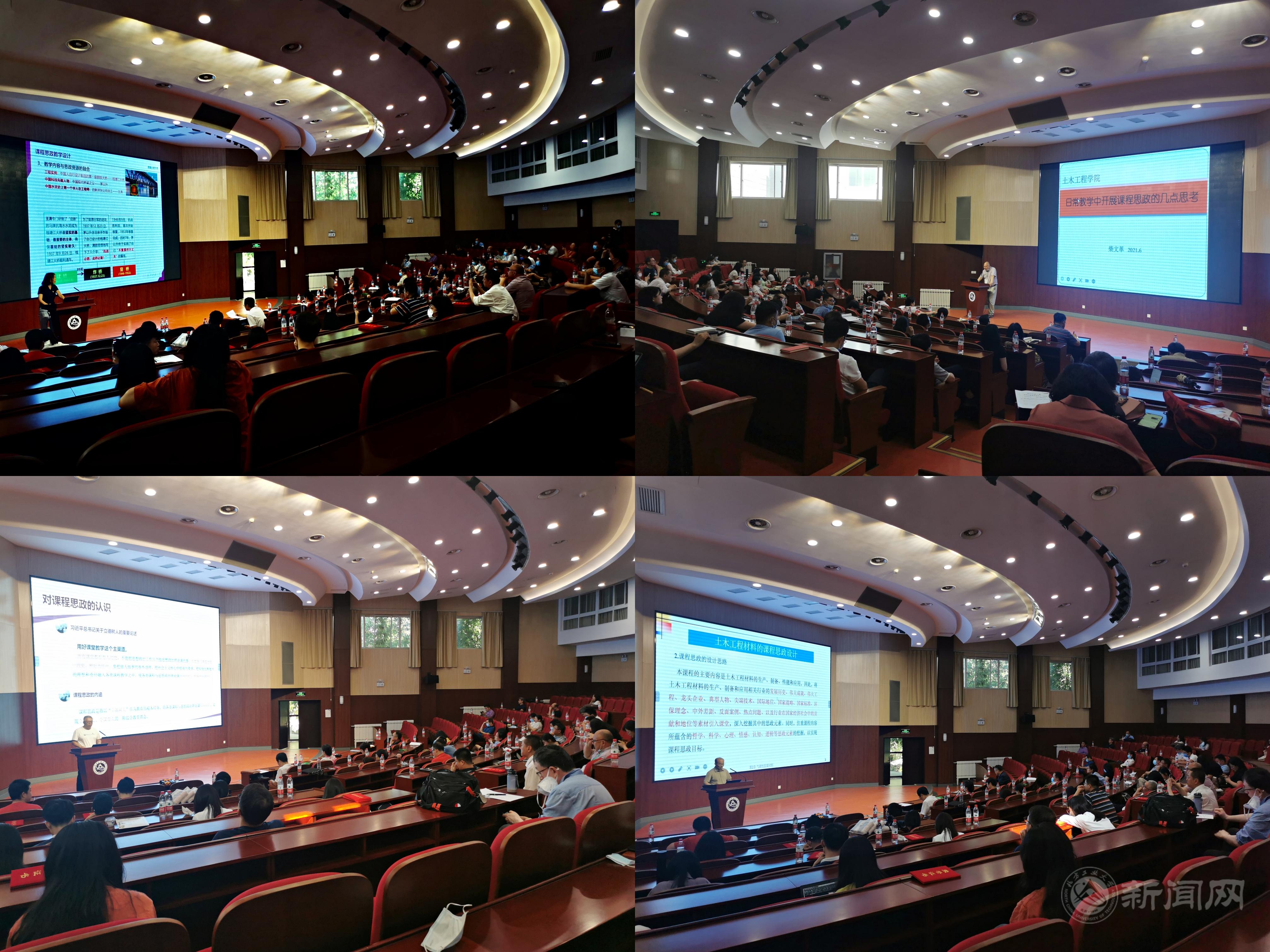 在课程思政交流会上,学院8位系(中心)主任和责任教师,结合自身的教学实践,分享了课程思政建设的思考和做法。土木工程系主任程海丽以“混凝土的耐久性”为例,把中国桥梁之父茅以升以及其设计制造的钱塘江大桥“建桥-炸桥-复桥”的事例中蕴含的专业知识和思政元素有机融合;土木系教师张燕坤从专业的角度深入挖掘课程思政元素,在传授专业知识和技能培养中激发学生科技报国的家国情怀和使命担当;土木工程系教师满轲阐述了“科学观”思政的概念,从著名人物、身边事例,以及以研促学等角度,讲述了如何围绕“科学观”进行思政,并探讨了教师应具备的思政素养;力学与地下工程系教师柴文革认为专业知识教学与课程思政教学,在内容上应该具有内在的一致性,二者应该是相互呼应,相互促进的关系;力学与地下工程系教师王建省以力学课程思政元素探索为题,讲授了中国古建中亭台楼阁、桥梁建筑、榫卯结构中体现的建筑文化与力学的关系;设备与工程管理系教师郁文红以专业知识学习为切入点,将党性教育、课程思政建设与学生的专业知识学习融合在一起;设备与工程管理系教师许炳把教书育人与立德树人、知识传授与价值引领相结合,生动形象的把课程思政教育融入到专业知识的讲授中;实验中心主中姜德民契合新时代节能环保发展理念,将课程思政内容融入土木工程材料课程教学过程中,激发学生爱国情怀、培养学生社会责任感。