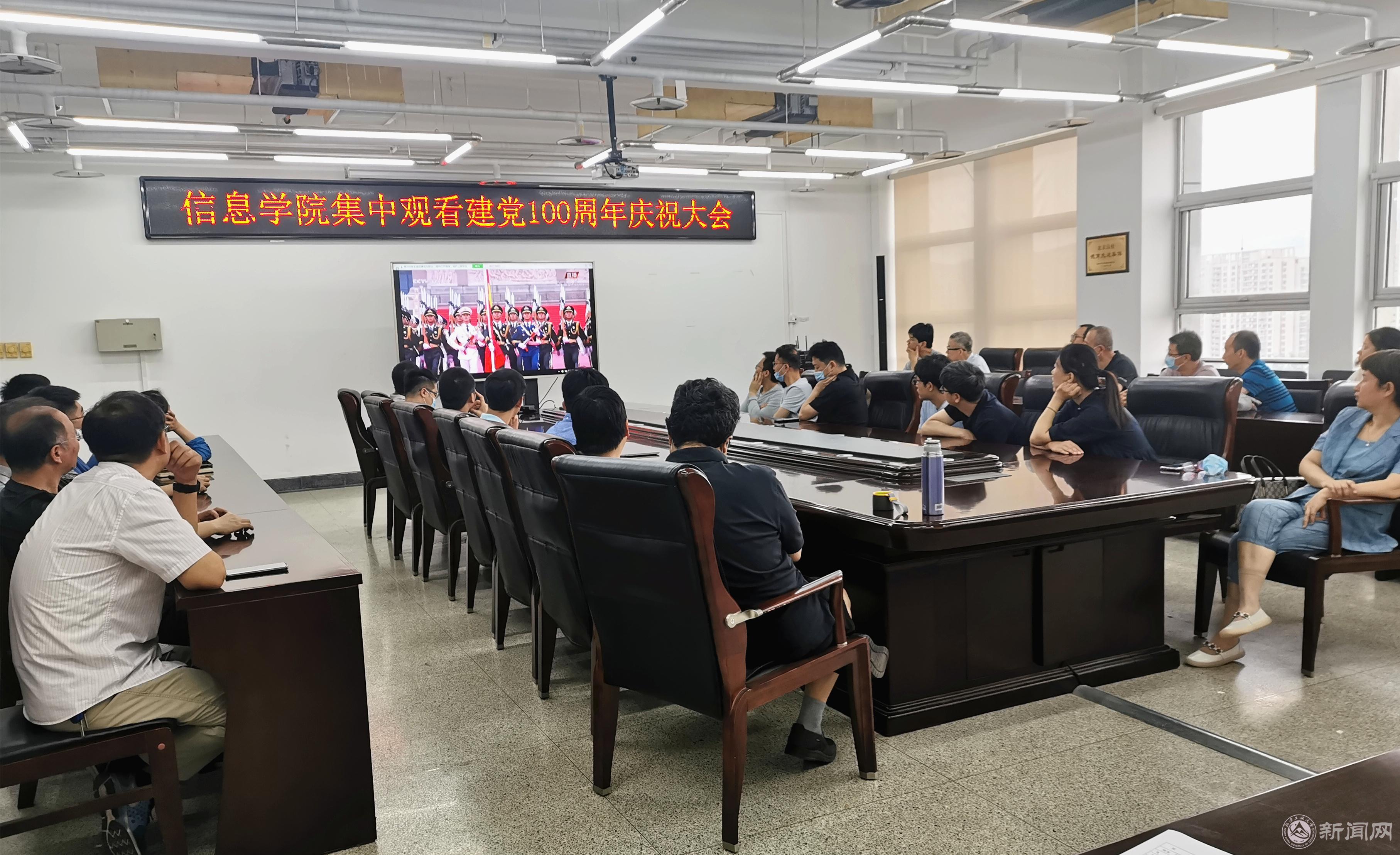 7月1日上午8时,庆祝中国共产党成立100周年大会在天安门广场隆重举行。场内参会师生代表有幸亲眼目睹伟大的中国共产党迎来百年荣耀时刻,激动不已,热泪盈眶,心中充满自豪与喜悦。场外信息学院在校全体师生积极集会,认真观看建党100周年庆祝大会,党史学习教育再掀新高潮。学院全体中层干部、党委中心组成员在广学楼报告厅主会场,全院教师在瀚学楼1014会议室、博远楼1023会议室,300余名学生代表在学生服务楼多功能厅、励学楼424和527阶梯教室集中观看现场直播。