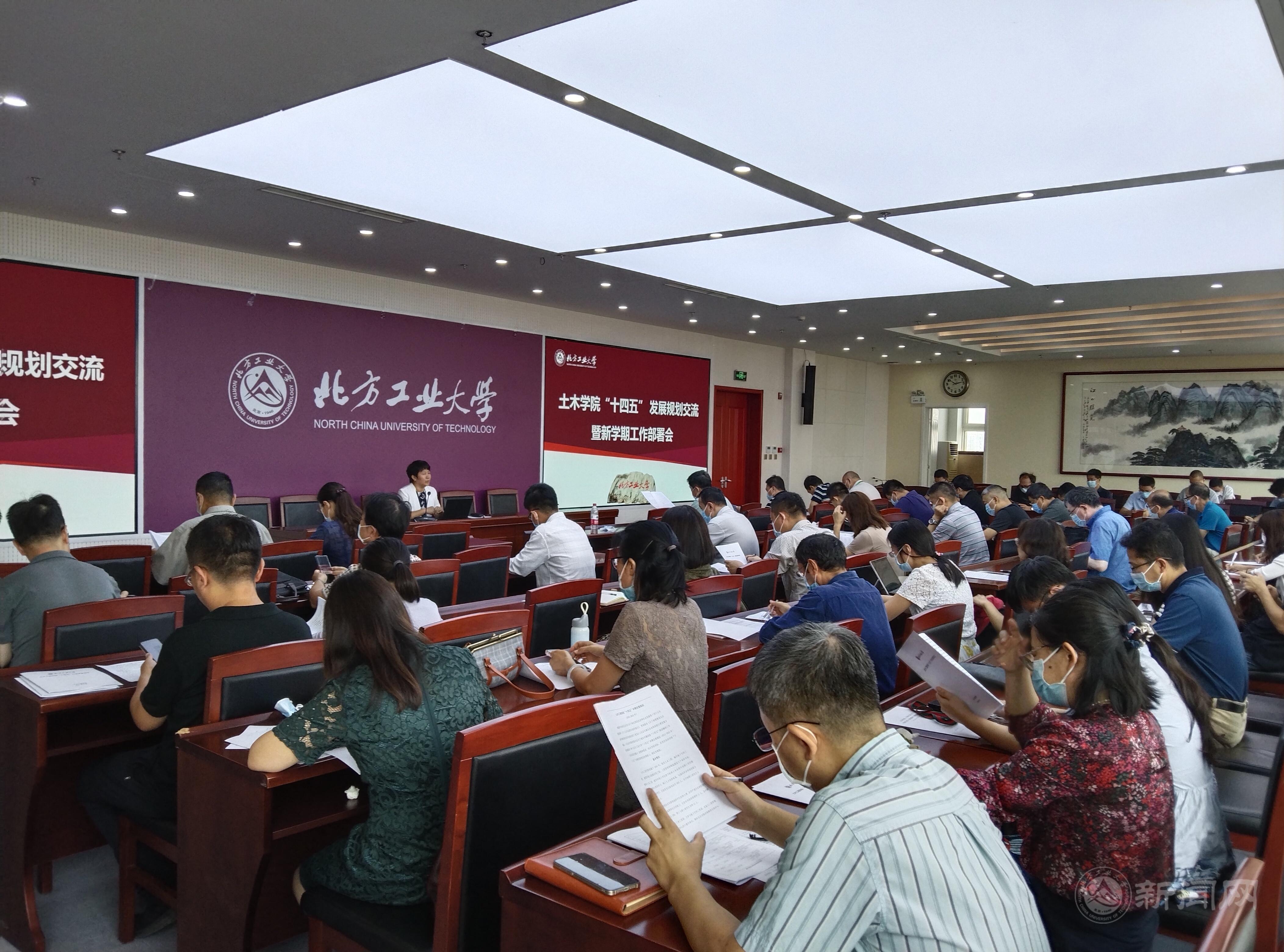 院长纪颖波系统总结分析“十三五”期间学院在党建和思政、教学科研、学科建设、人才培养、师资队伍和国际化办学等工作的基础上,对学院“十四五”发展规划做出详细解读和部署。“十四五”期间,土木学院将主动适应国家和北京市区域经济社会发展需要,在全面从严治党、专业建设、学科建设、科研工作、招生就业和三全育人等方面,明确方向、明晰任务、狠抓落实,一步一个脚印完成“十四五”规划任务。同时,还对新学期的疫情防控、教学秩序、研究生培养、“十四五”任务分解和各系(中心)实施方案制定做出具体部署。
