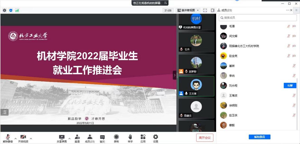 5月11日晚,机械与材料工程学院召开2022届毕业生就业工作推进会,学院全体班子成员、各系主任、班导师、本科就业辅导员参加会议。